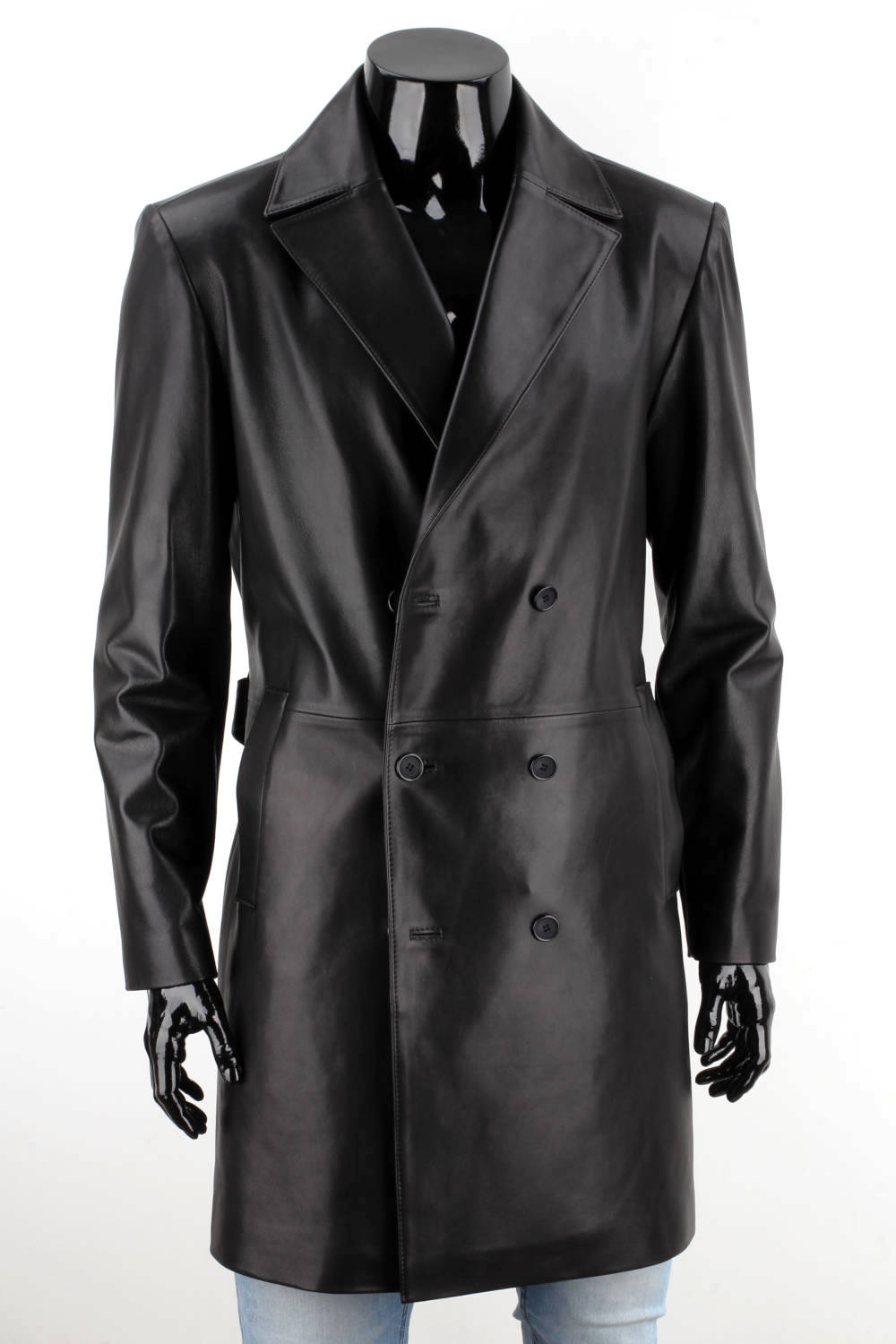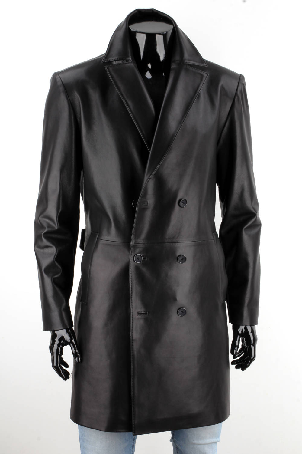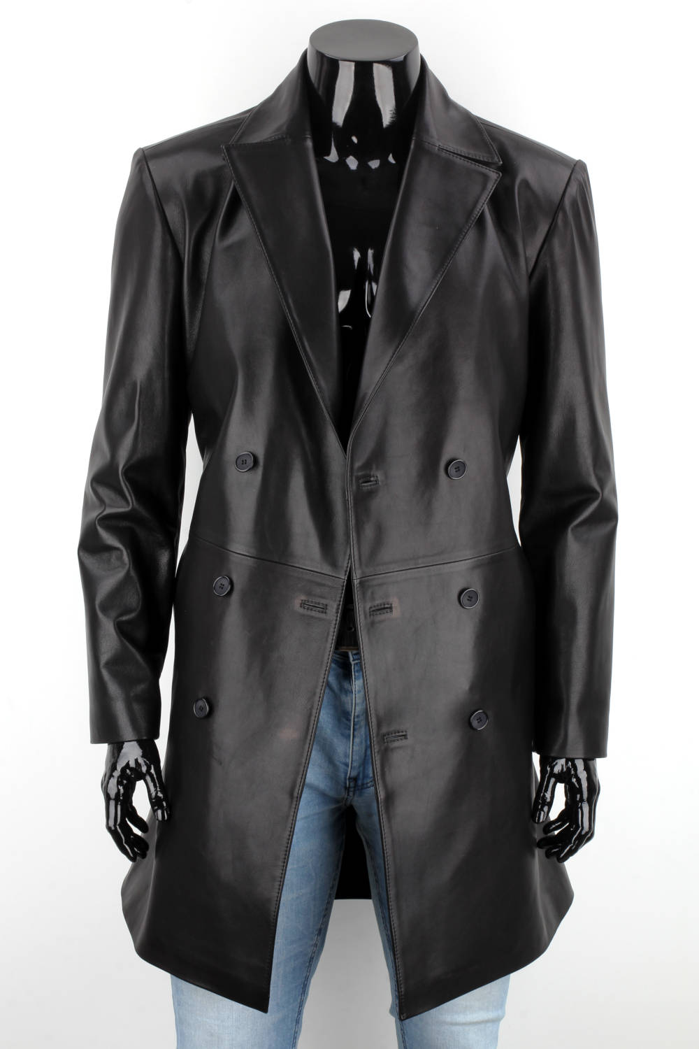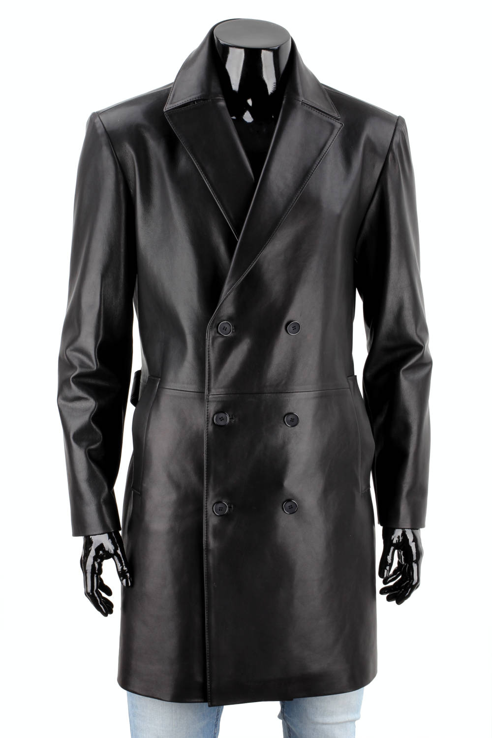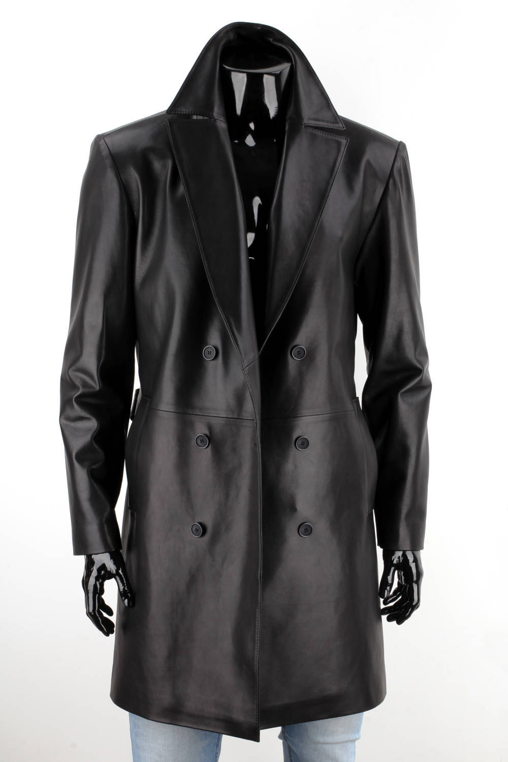 Dwurzędowy płaszcz skórzany męski - model WIN450