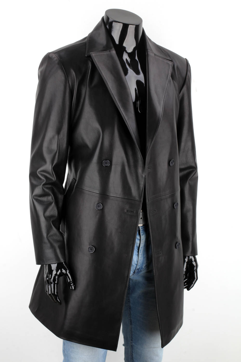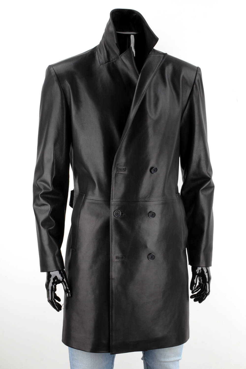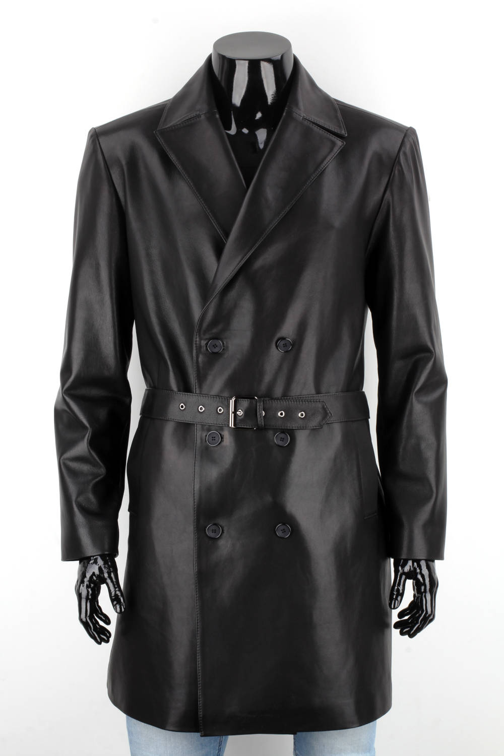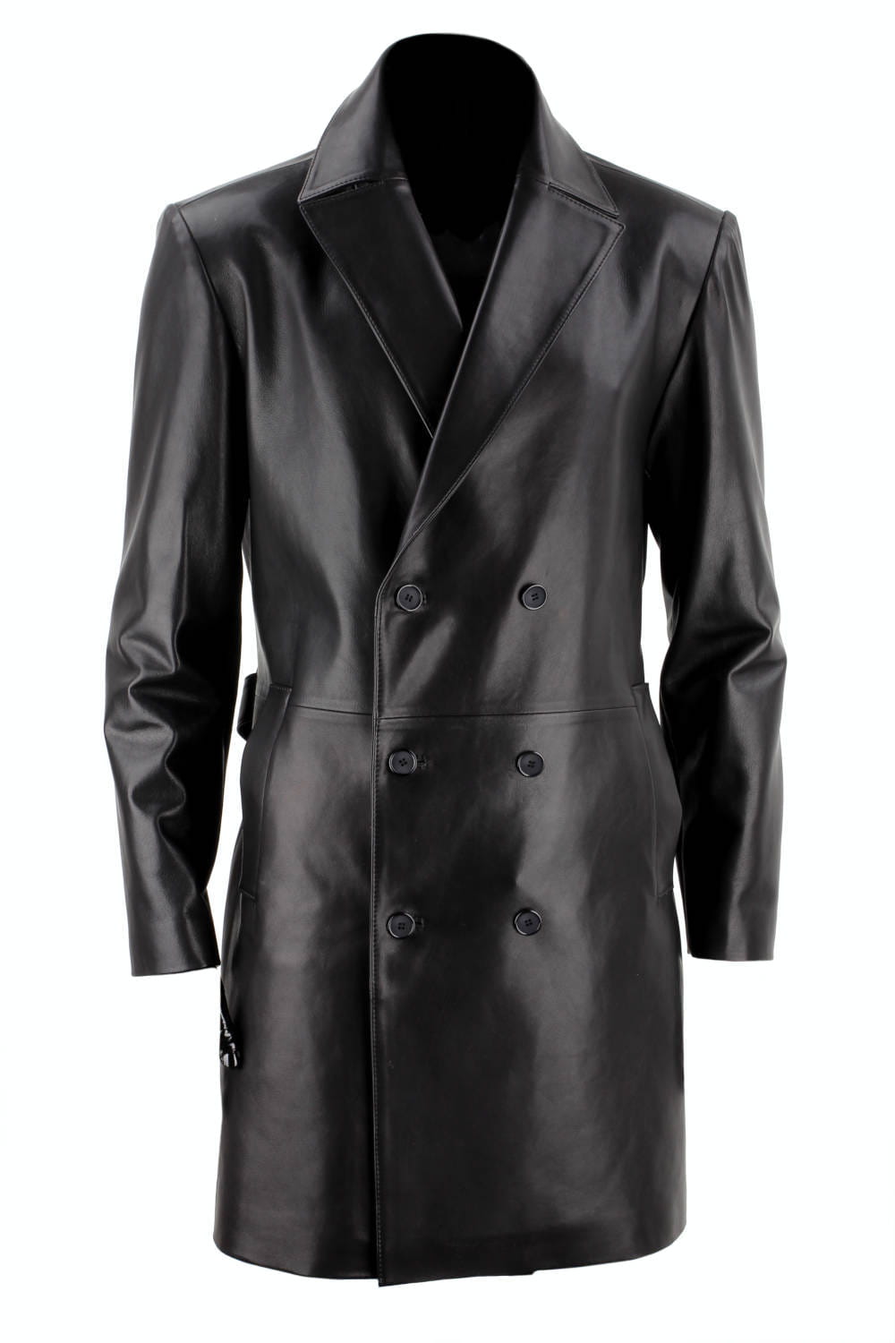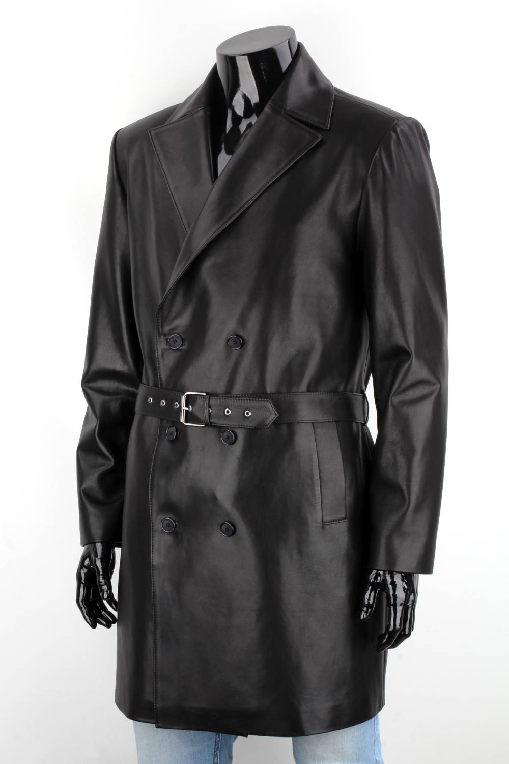 Dwurzędowy płaszcz skórzany męski - model WIN450