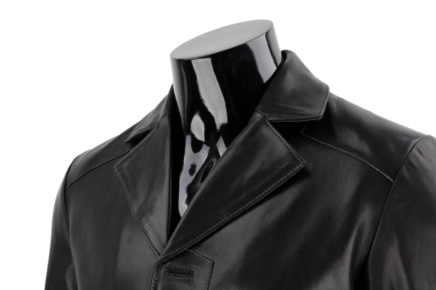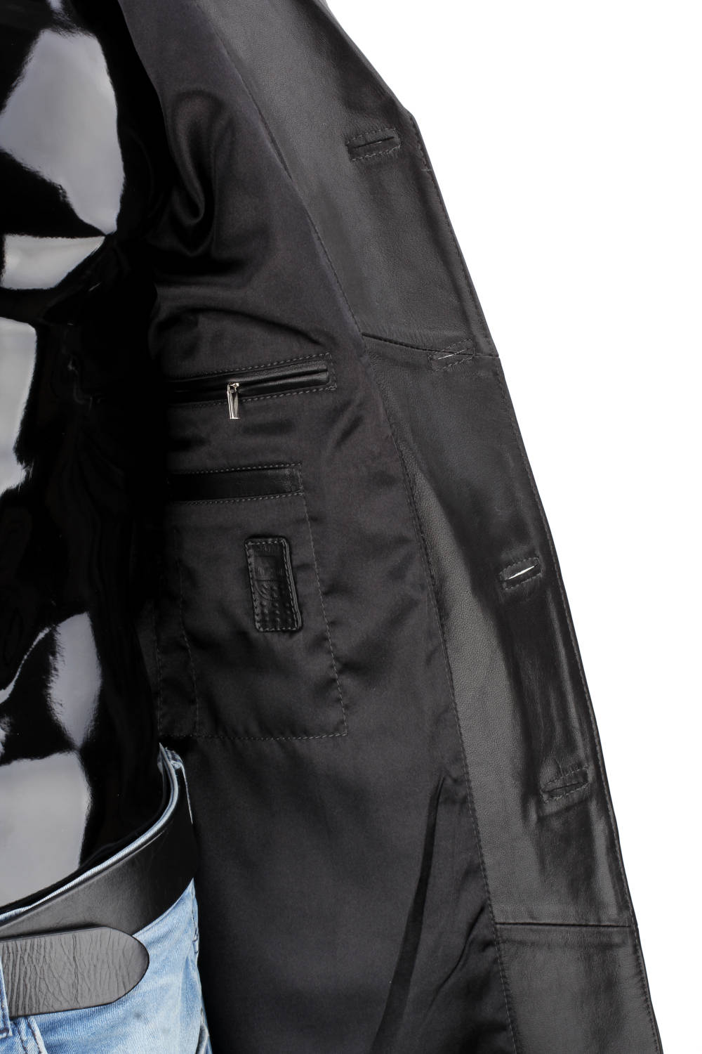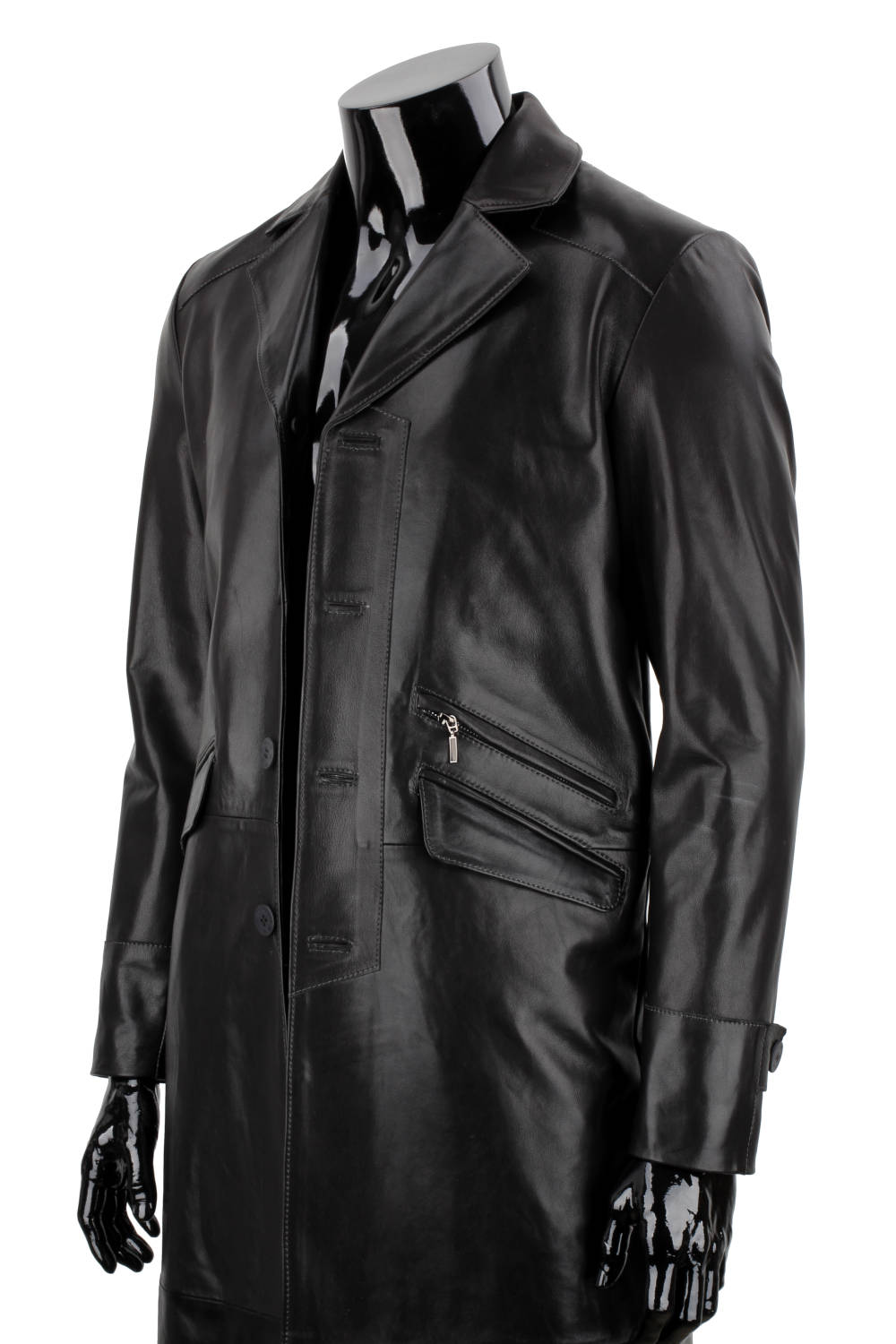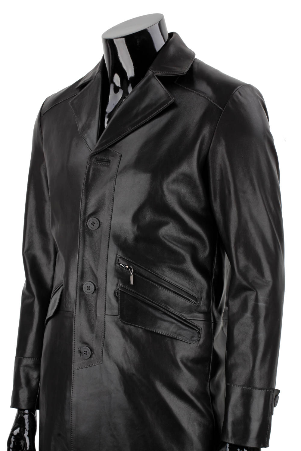 Klasyczny długi płaszcz męski skórzany z czarnej skóry