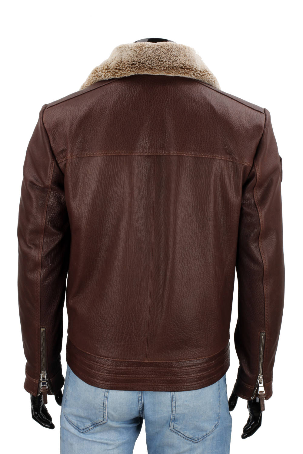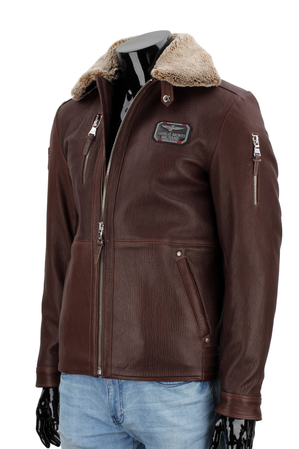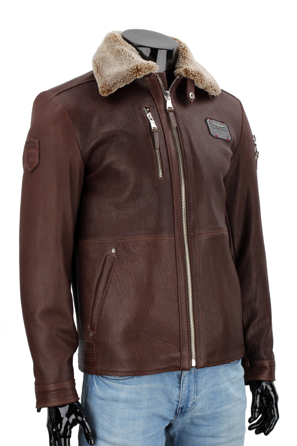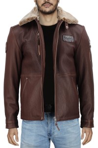 Męska Pilotka skórzana z kołnierzem z kożucha naturalnego