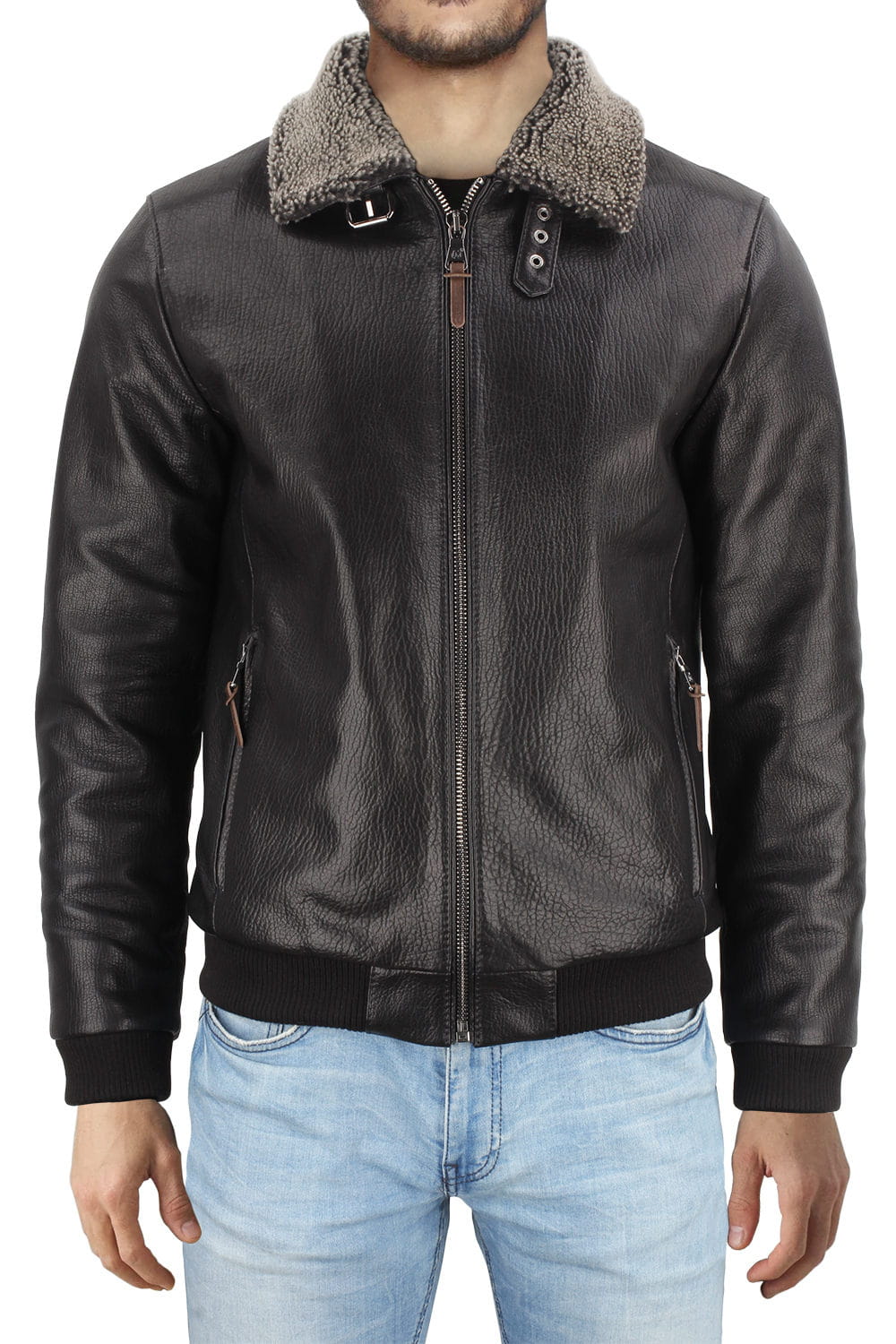 Pilotka skórzana męska w luźnym kroju ze ściągaczami